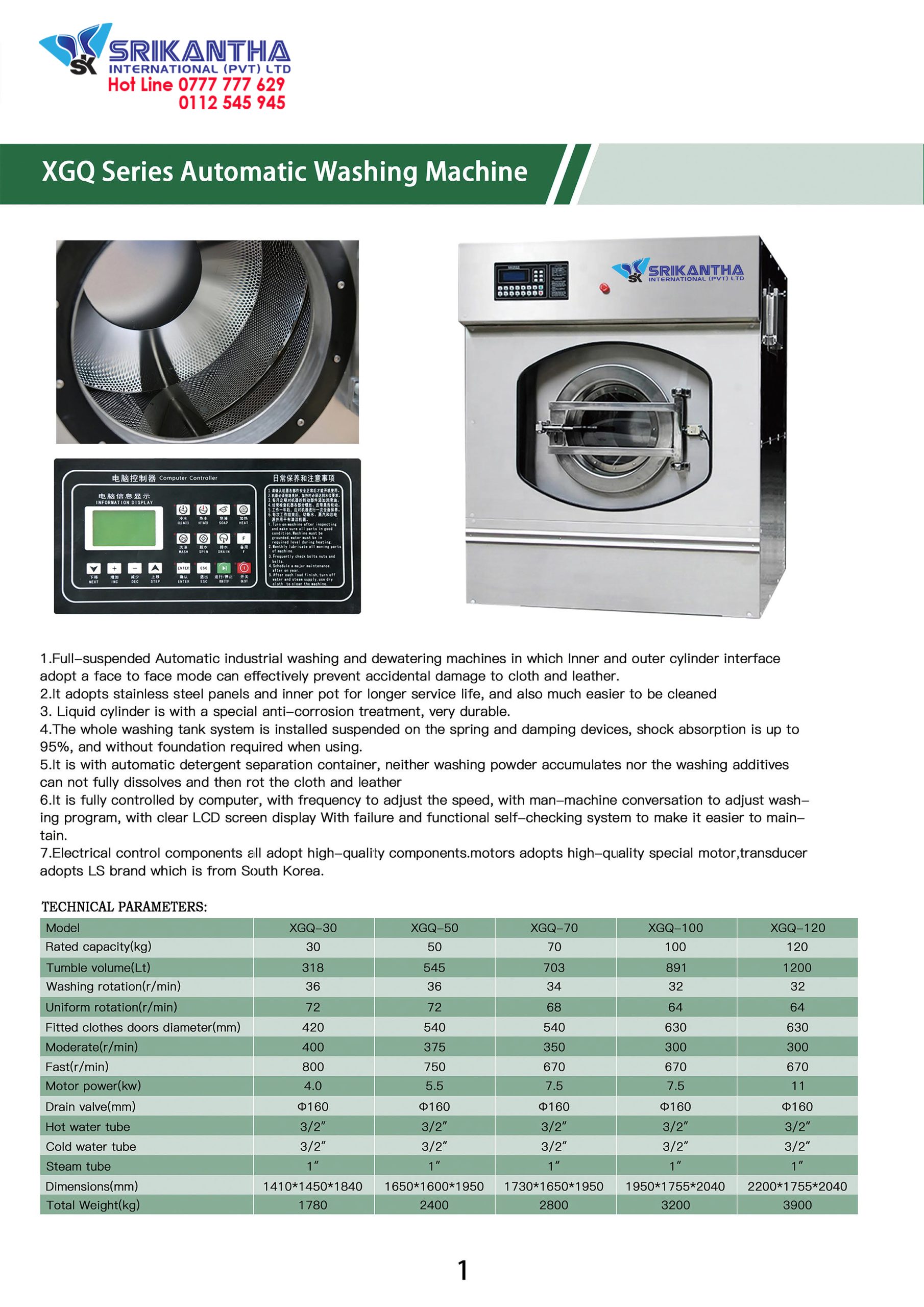 Washing Machine Spec sheet Srikantha Made in SriLanka 0777777629